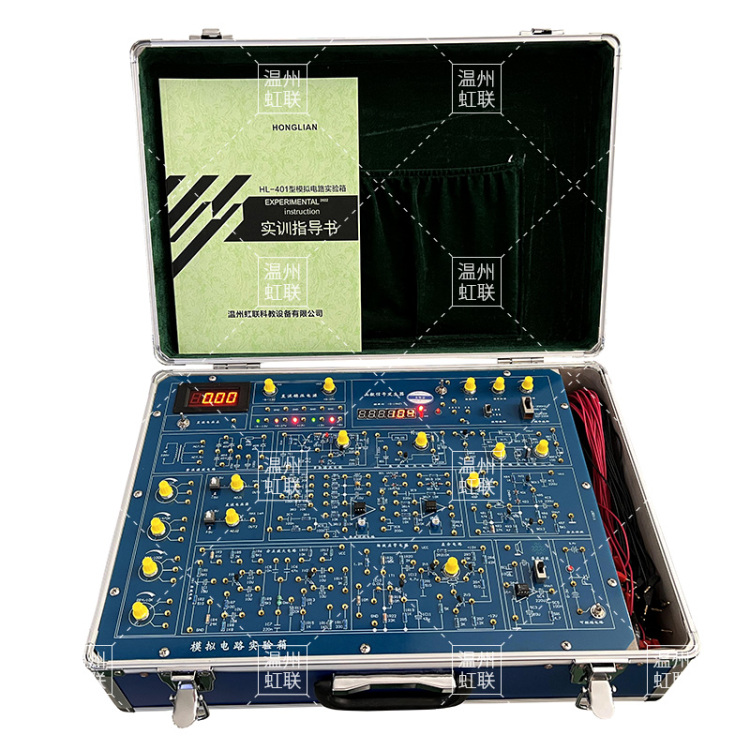 HL-401型模拟电路实验箱将所有实验模块分类集中分布于线路板上,由锁紧式插孔将引线引出,学生可按照各实验项目自已动手搭建电路,有 利于培养学生的思维能力及动手能力,也增强了该实验箱的适用性。 HL-401型模拟电路实验箱以《高等工业学校电子技术基础课程教学基本要求》中确定的教学实验要求为基础,包括了《模拟电子技术基础》课程全部实验内容,是专为各大专院校、中等专业学校和电大、职大等学生学习电子技术、电子线路等课程开发的最新型实验设备。